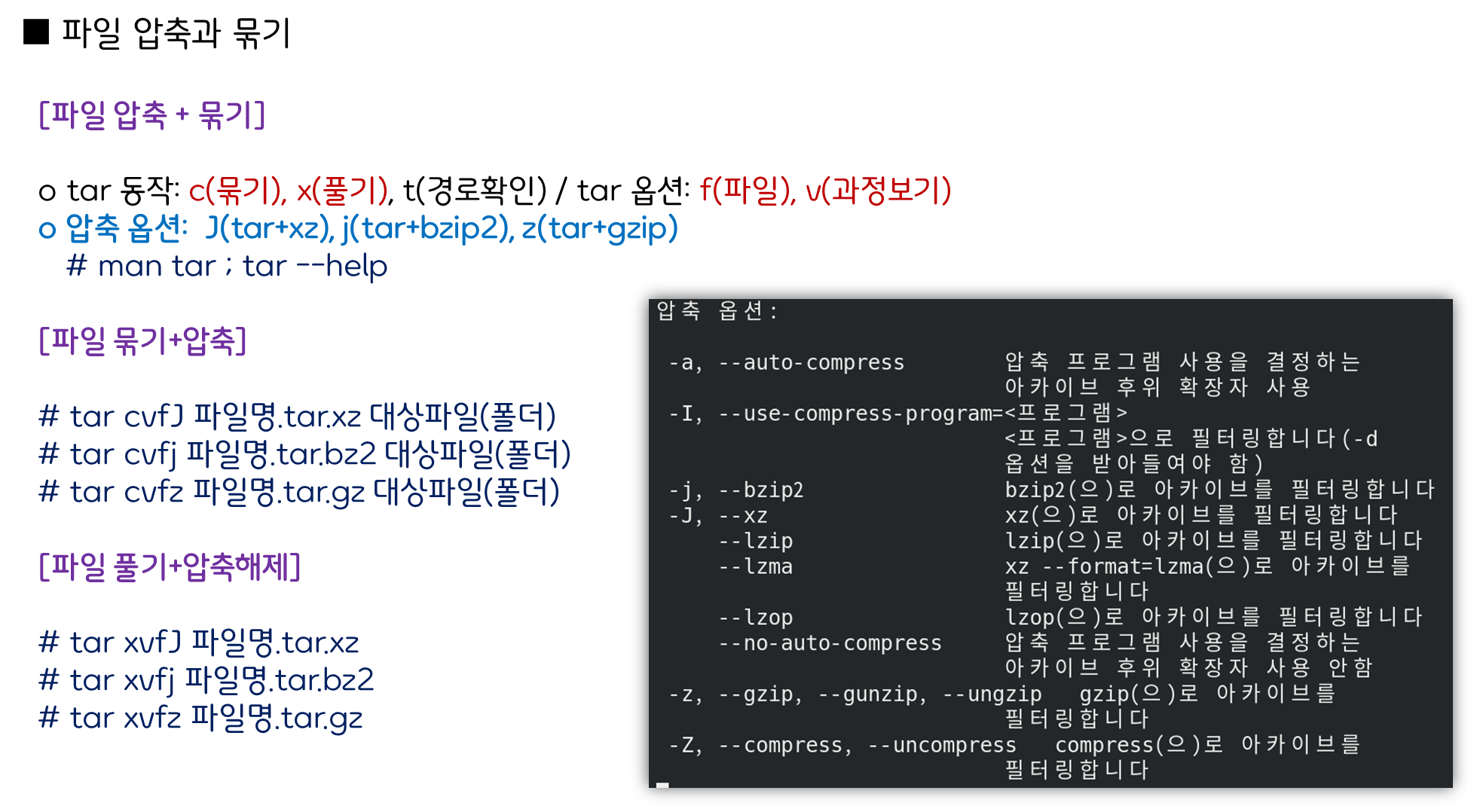 ▶ 압축 및 묶기 예시