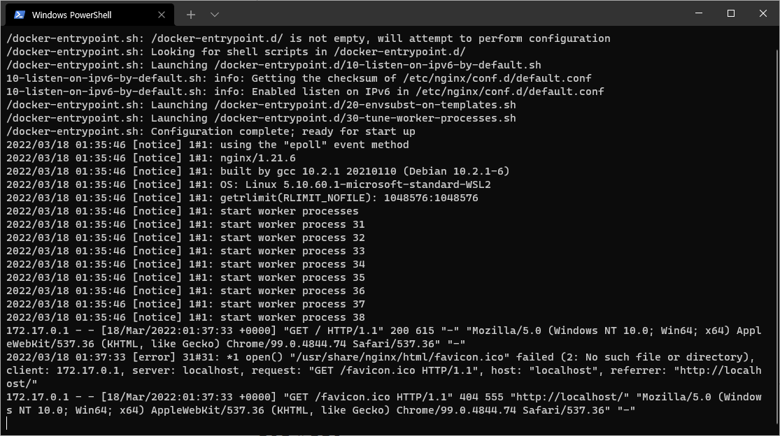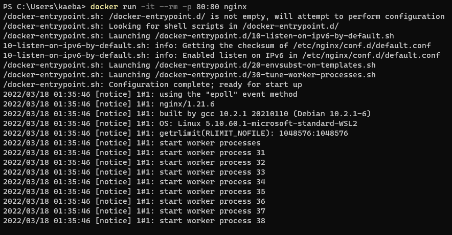 $ docker run -it --rm -p 80:80 nginx