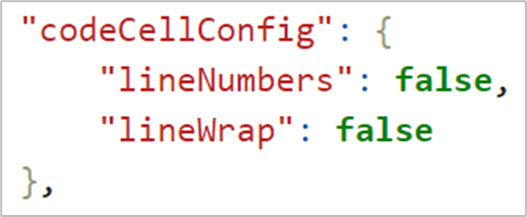 ② System Defaults 영역에서 Code Cell Configuration 부분의 "lineNumbers": false, "lineWrap": false 값 복사