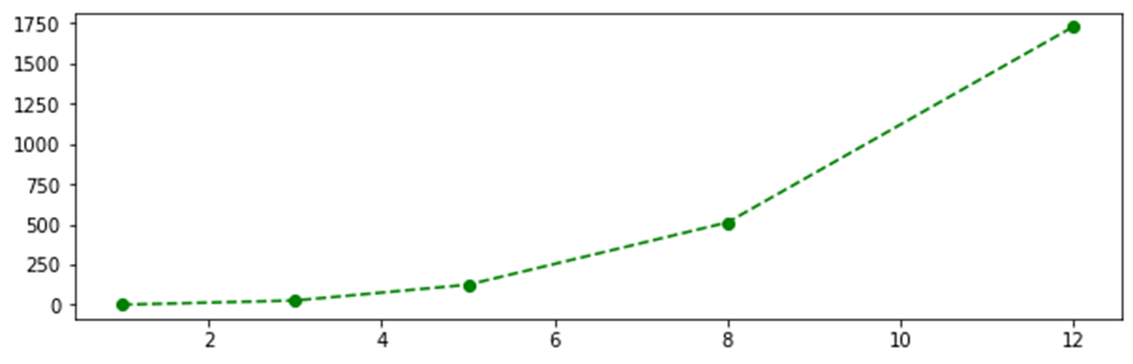 plt.plot(x, y, 'go--')