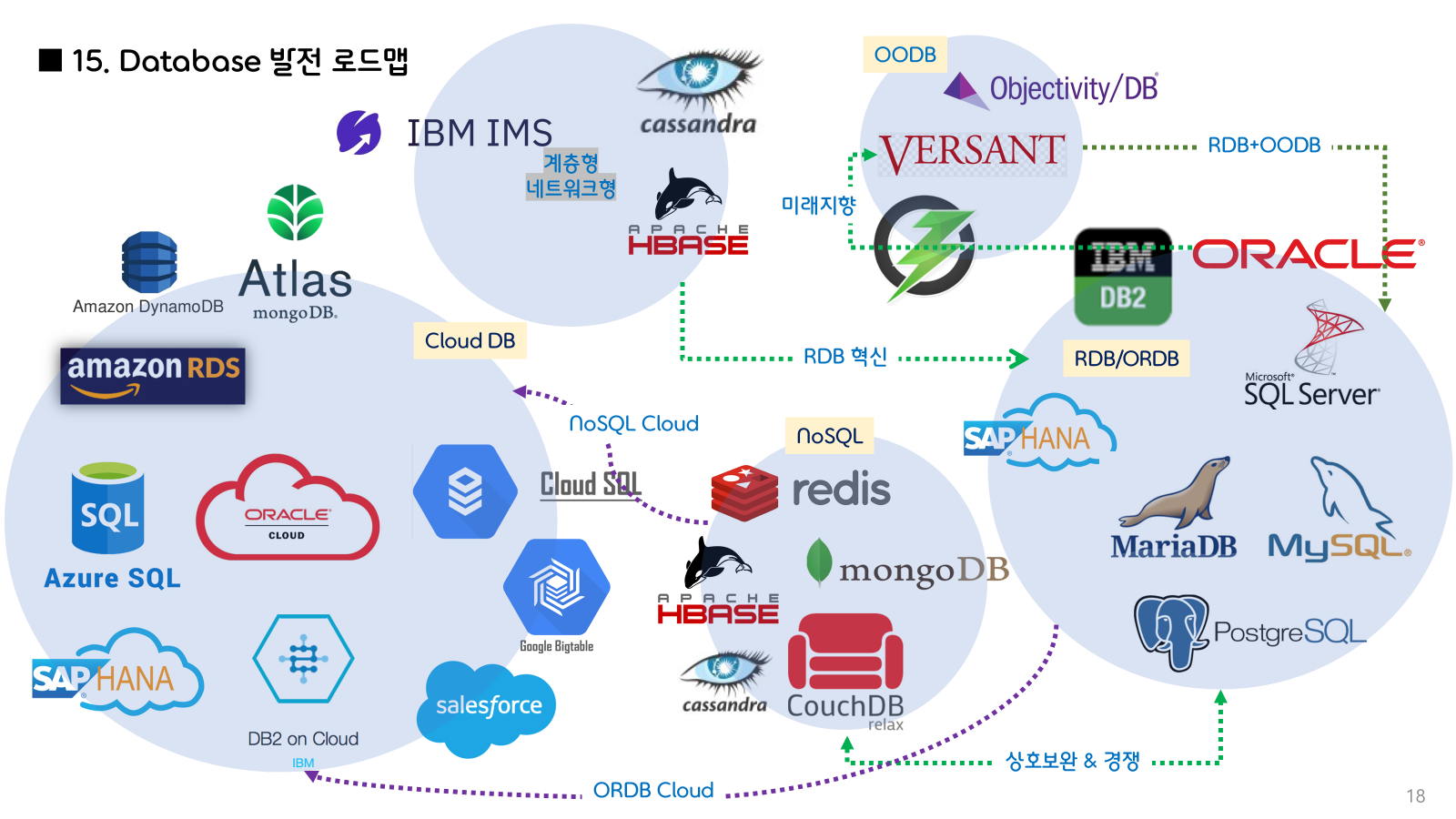 # 계층형 -> 네트워크형 -> RDB -> OODB -> ORDB + NoSQL -> Cloud DB