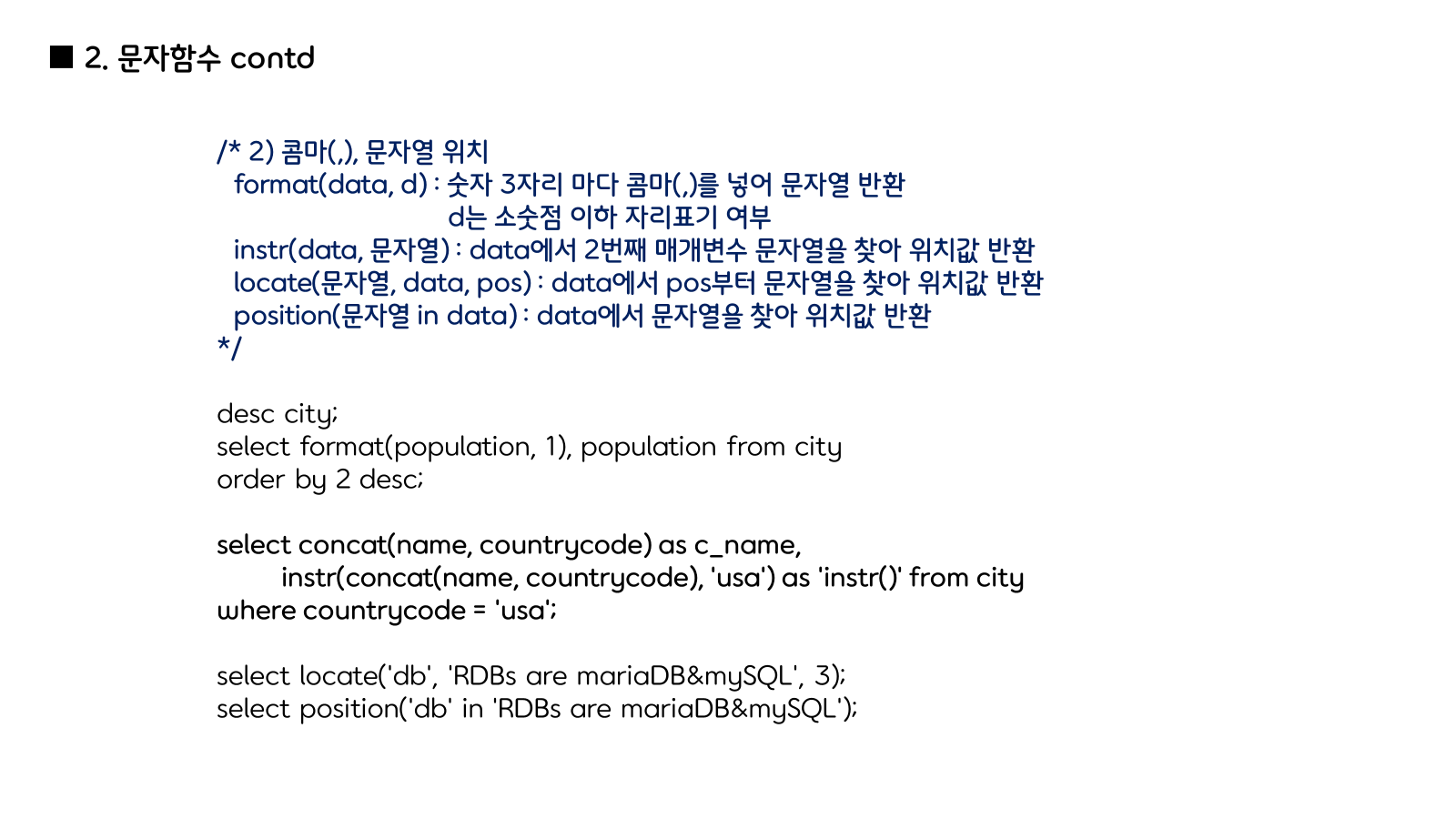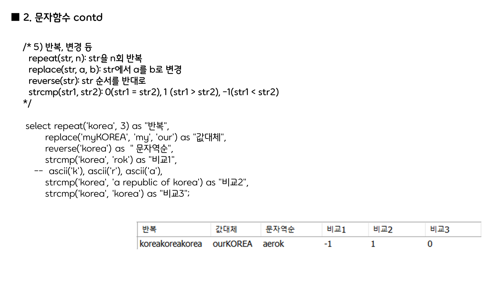 REPLACE(): 문자열 내 지정된 문자열을 다른 문자열로 바꿉니다.