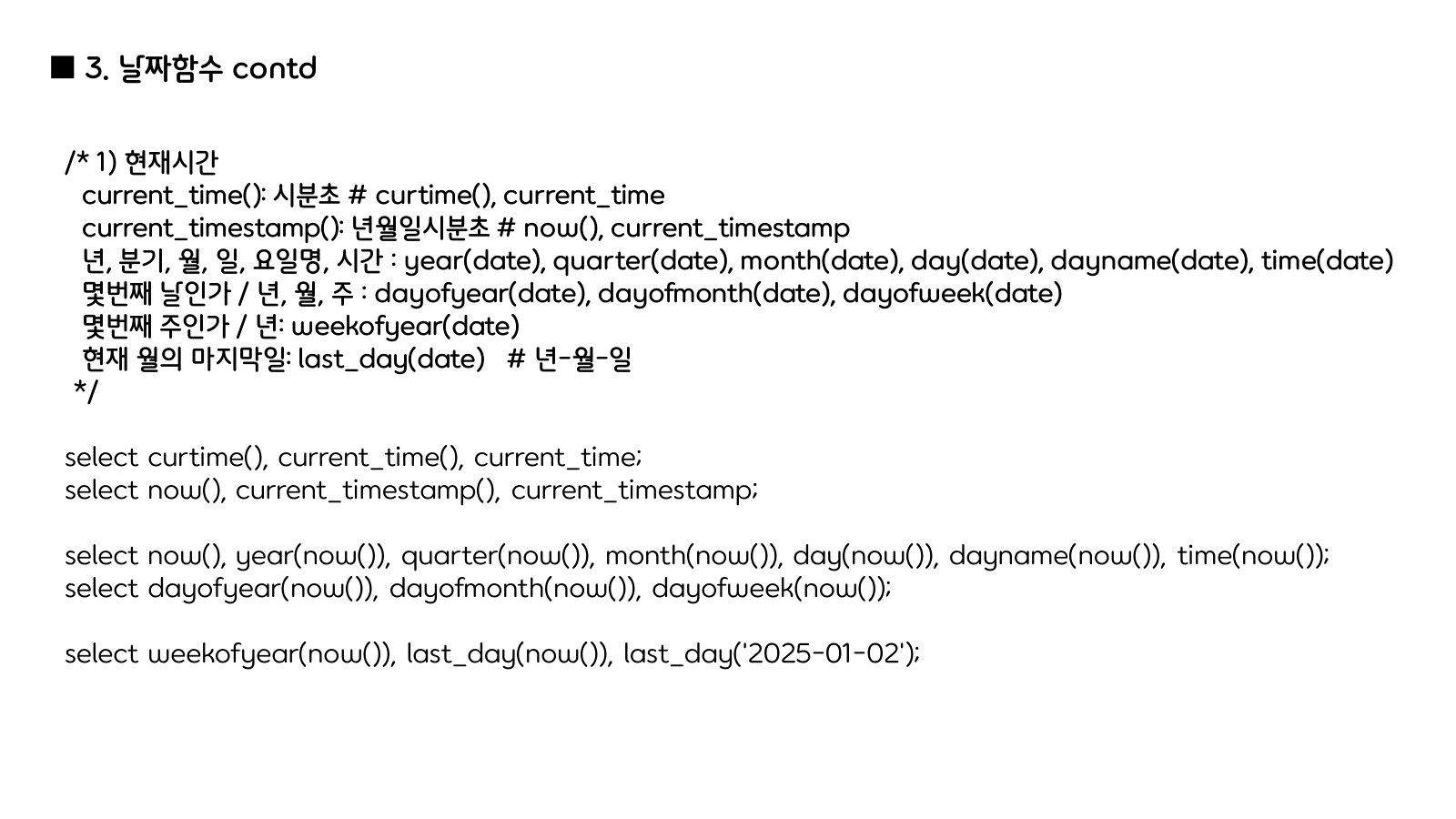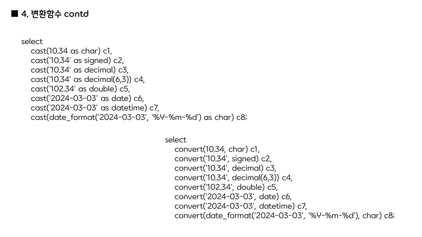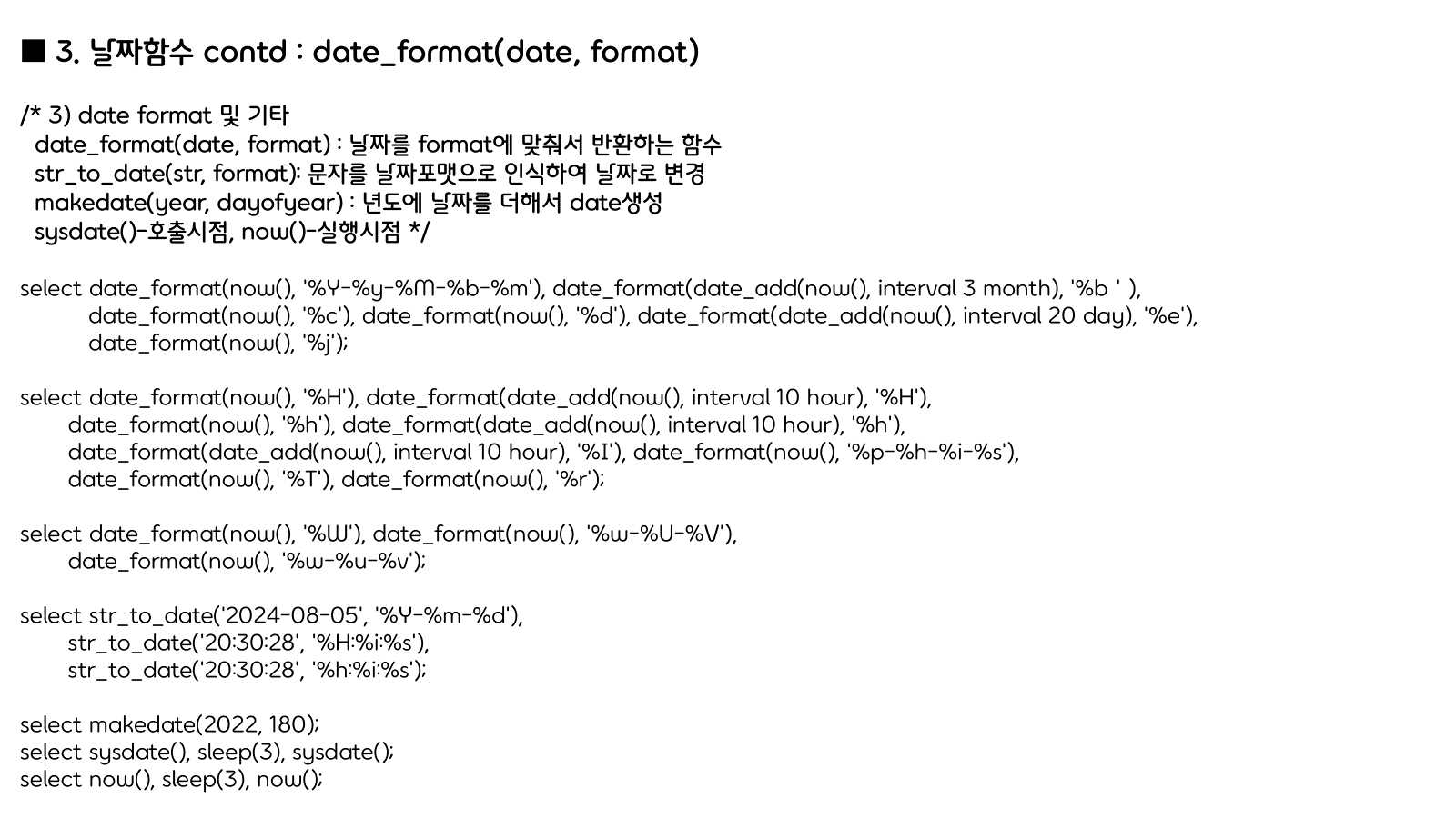 STR_TO_DATE(): 문자열을 날짜 형식으로 변환합니다.