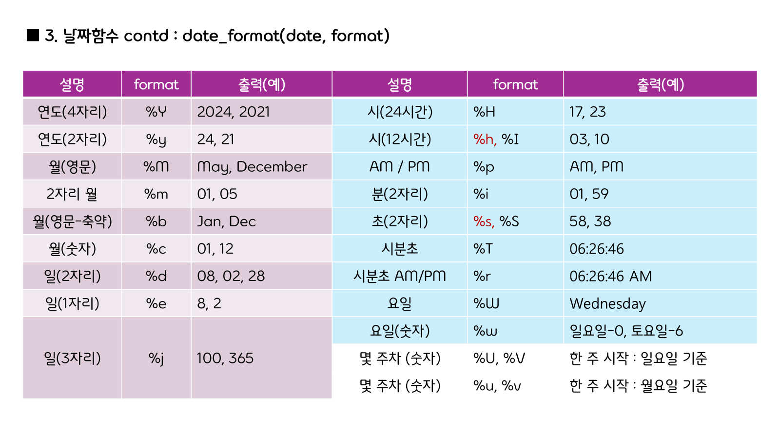 DATE_FORMAT(): 날짜 형식을 변환합니다.