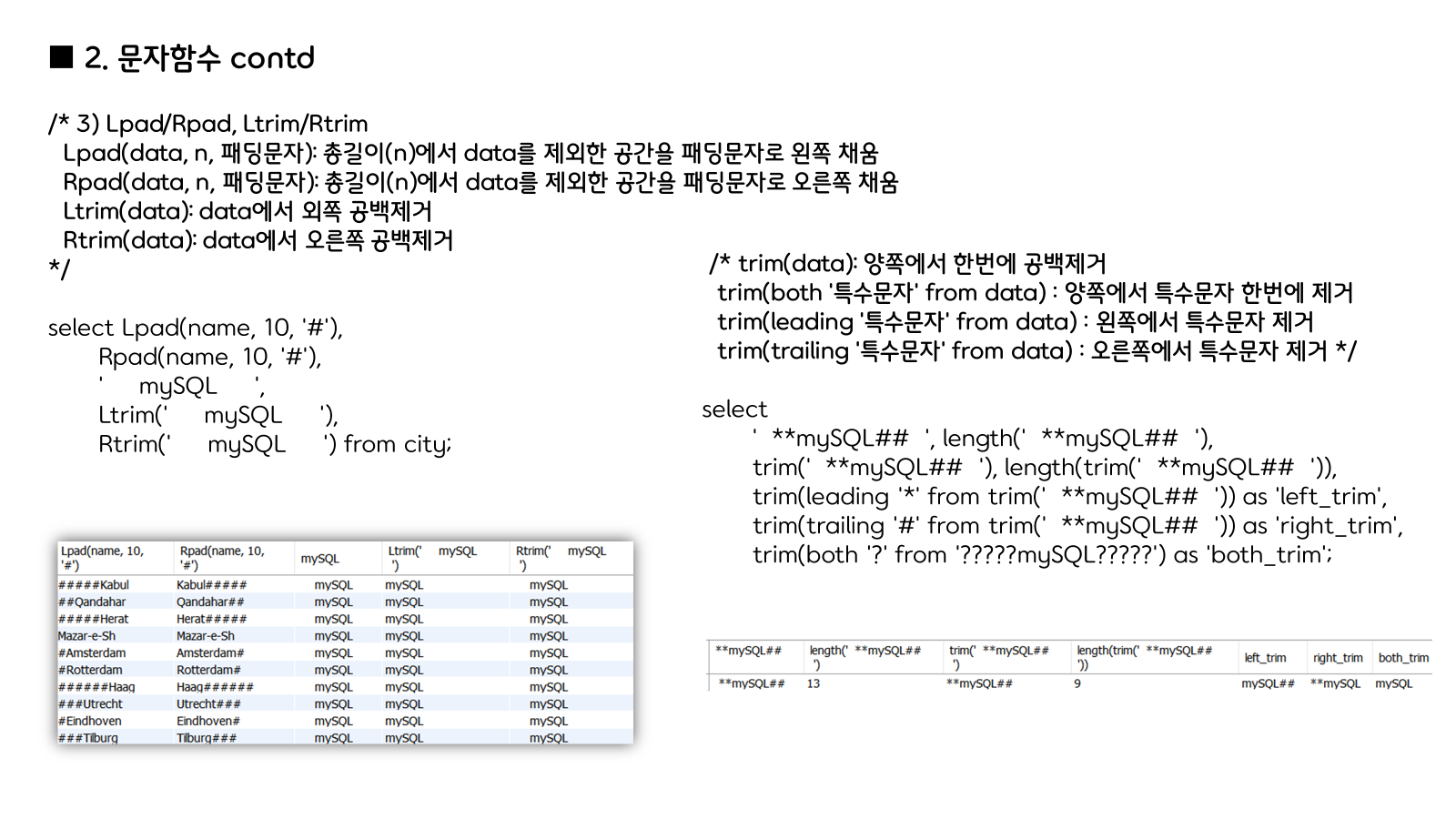 TRIM(): 문자열 앞뒤 공백을 제거합니다.