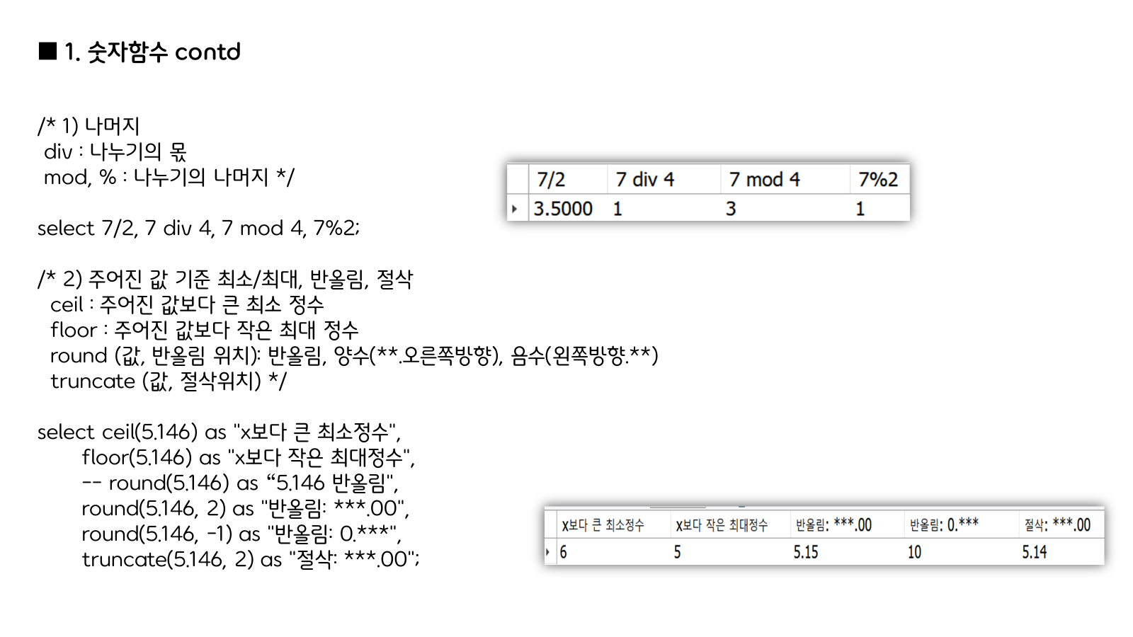 SELECT FLOOR(sales_amount) AS total_sales; -- 매출액의 소수점 아래 버림