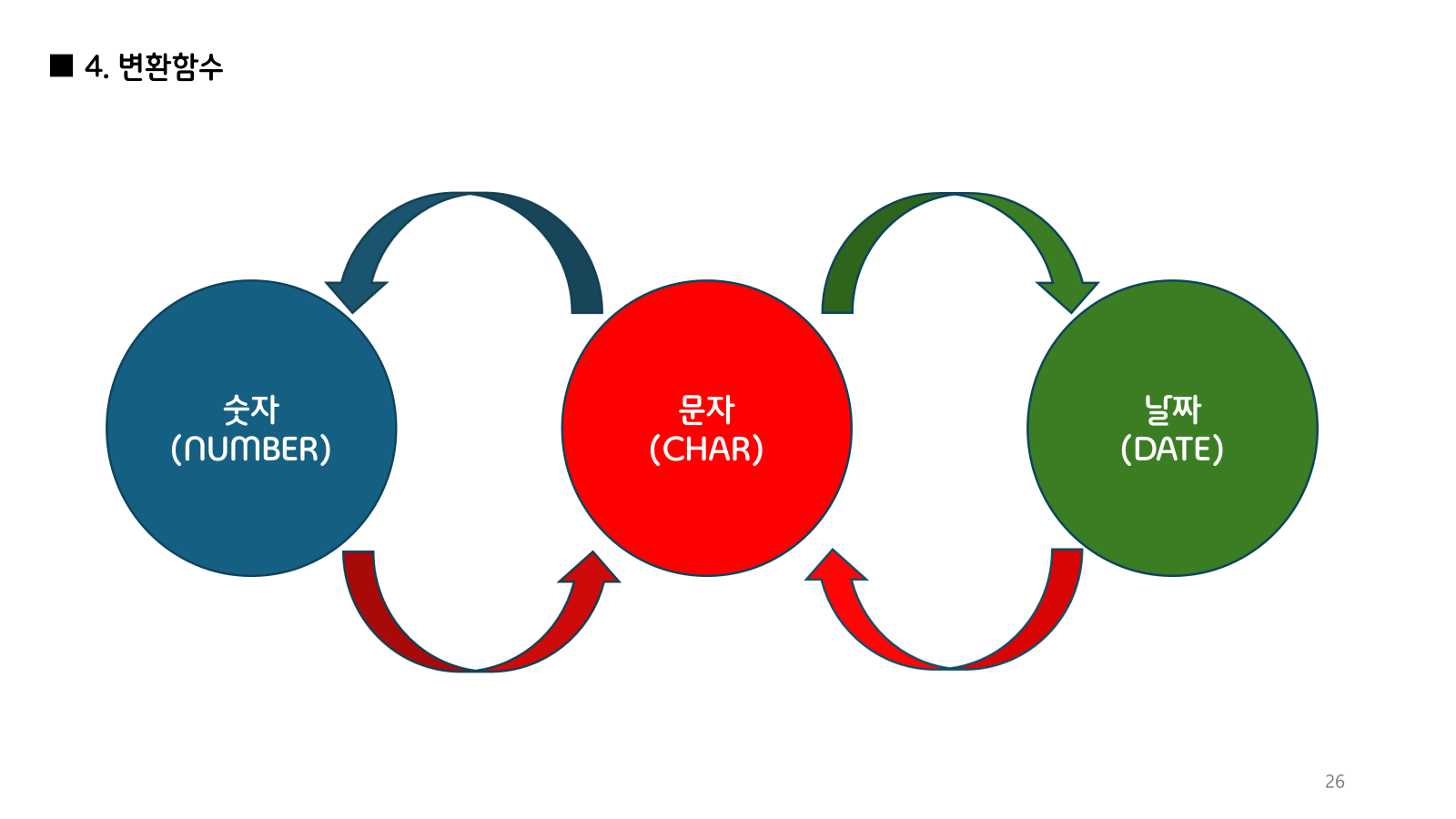 단일행 함수는 각 행의 값을 하나의 결과 값으로 변환하는 함수입니다. 즉, 입력으로 하나의 행을 받고, 해당 행의 특정 값을 추출하거나 변환하여 단일 결과 값을 반환합니다.