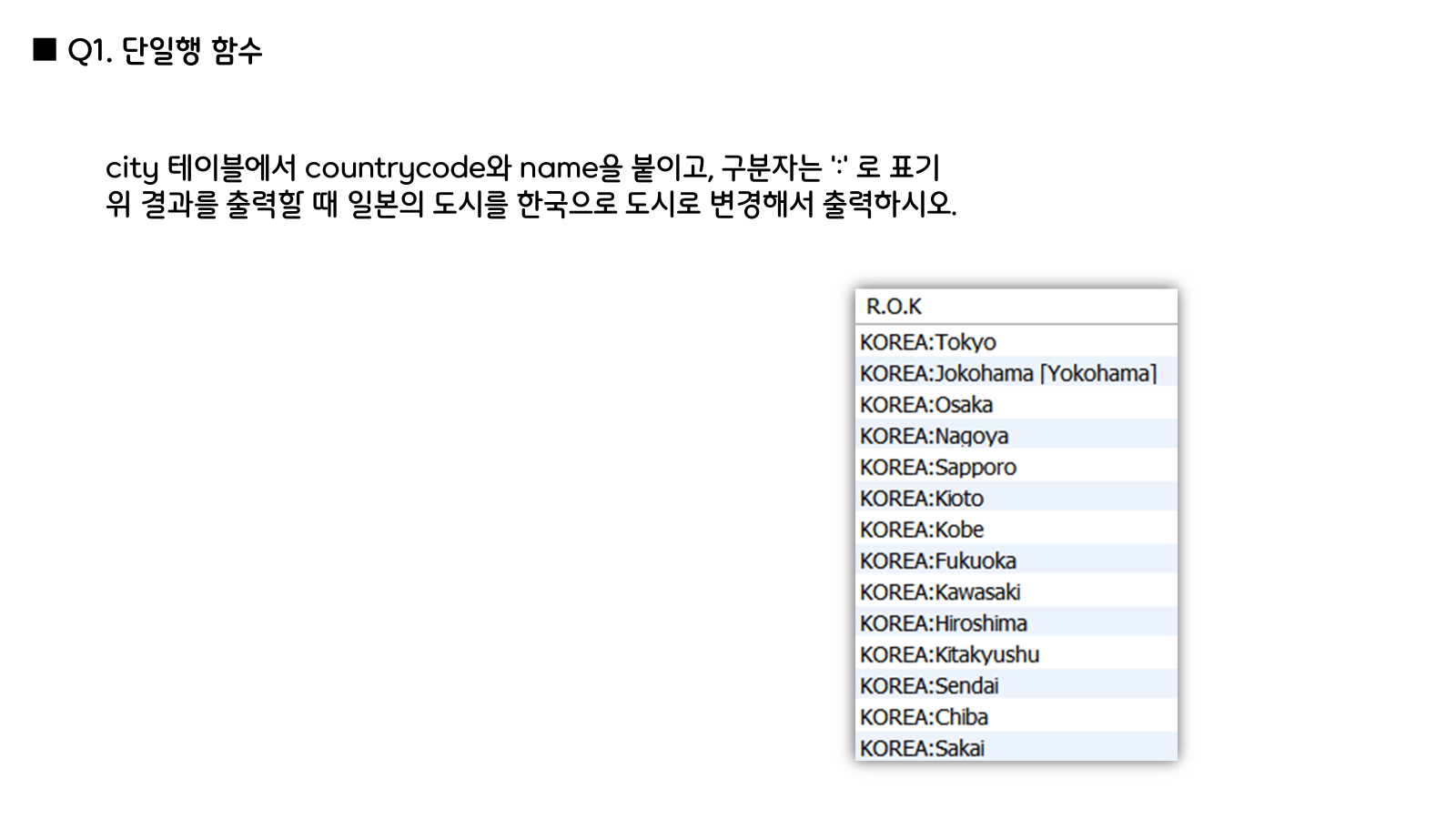 여러 함수 조합: 여러 단일행 함수를 조합하여 원하는 결과를 얻을 수 있습니다.