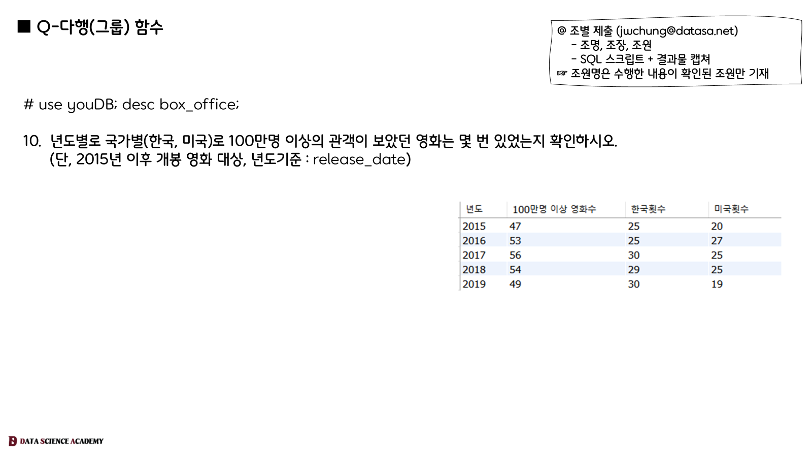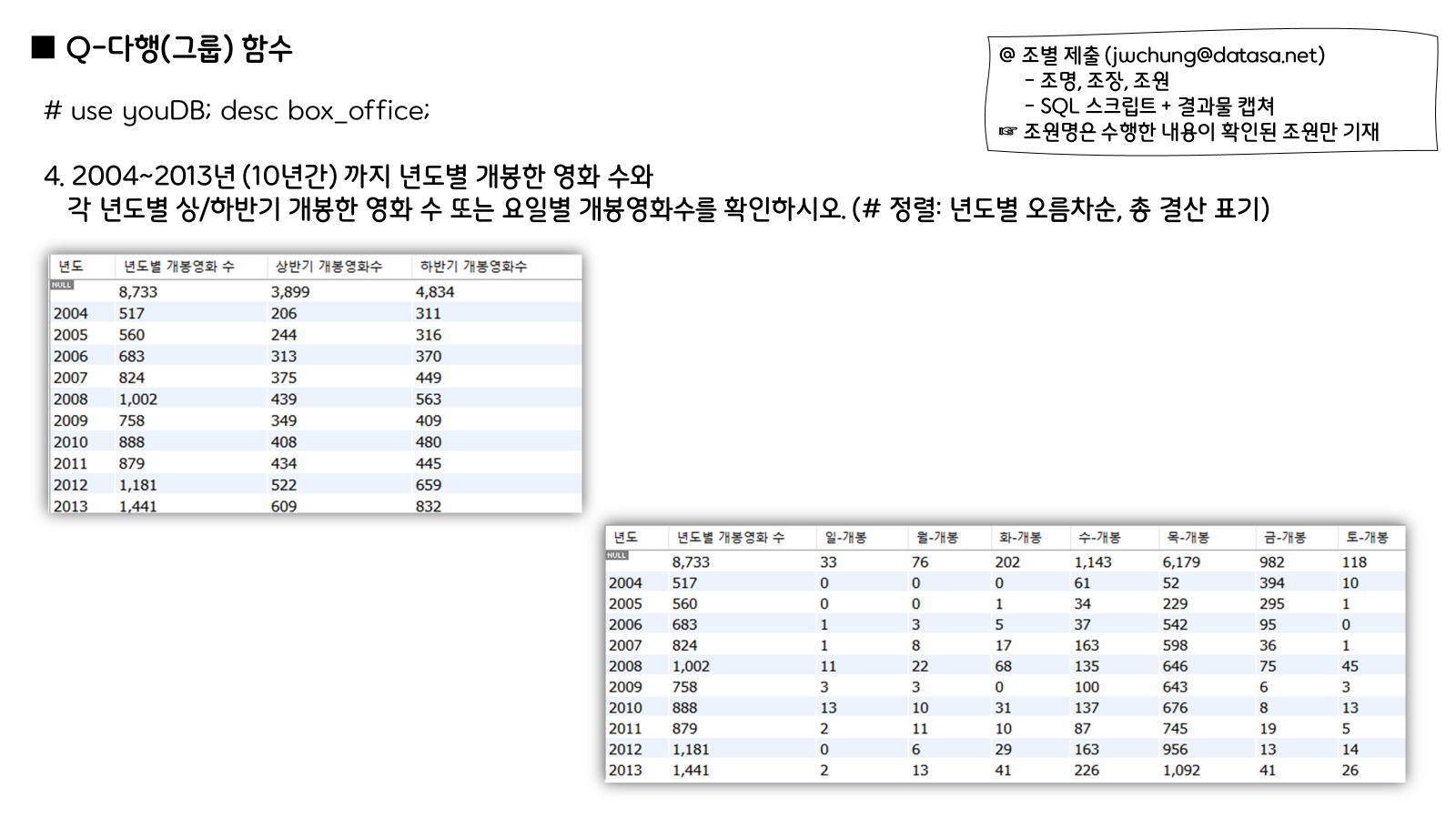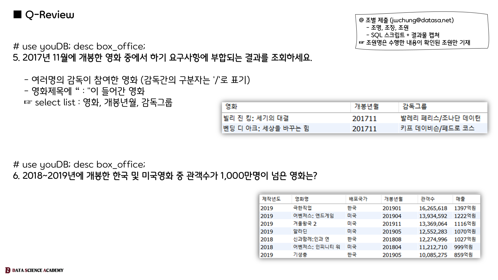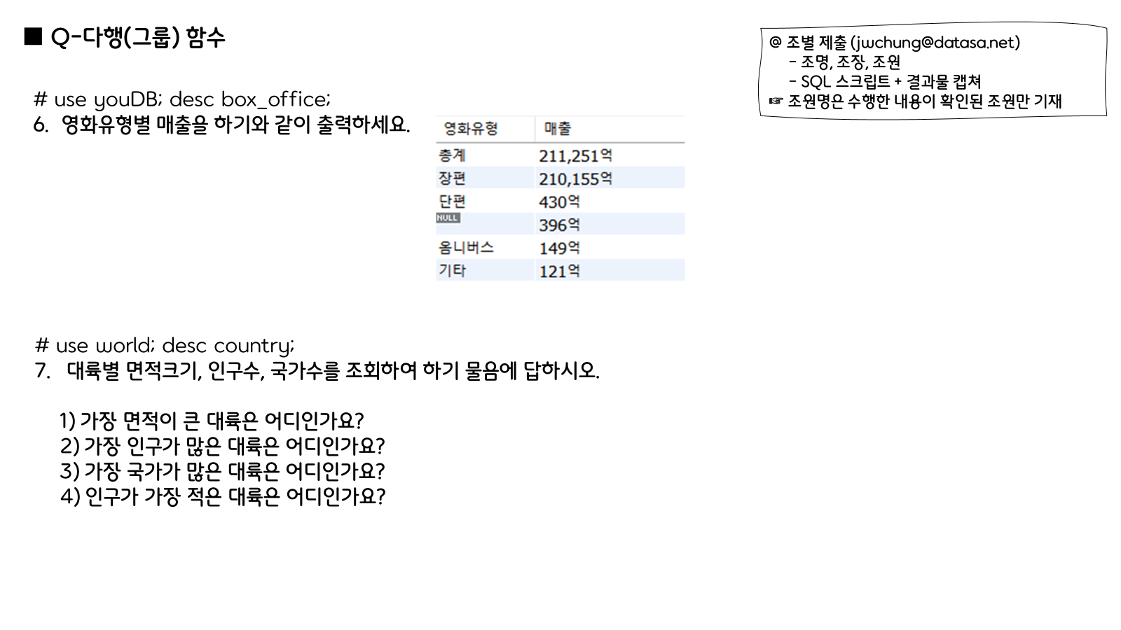 ▶ 그룹함수를 안내하기전에 지금까지 안내한 내용을 중심으로 Review Quiz 풀고 가기