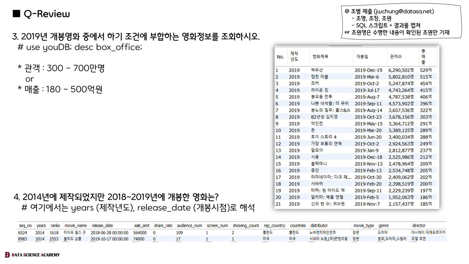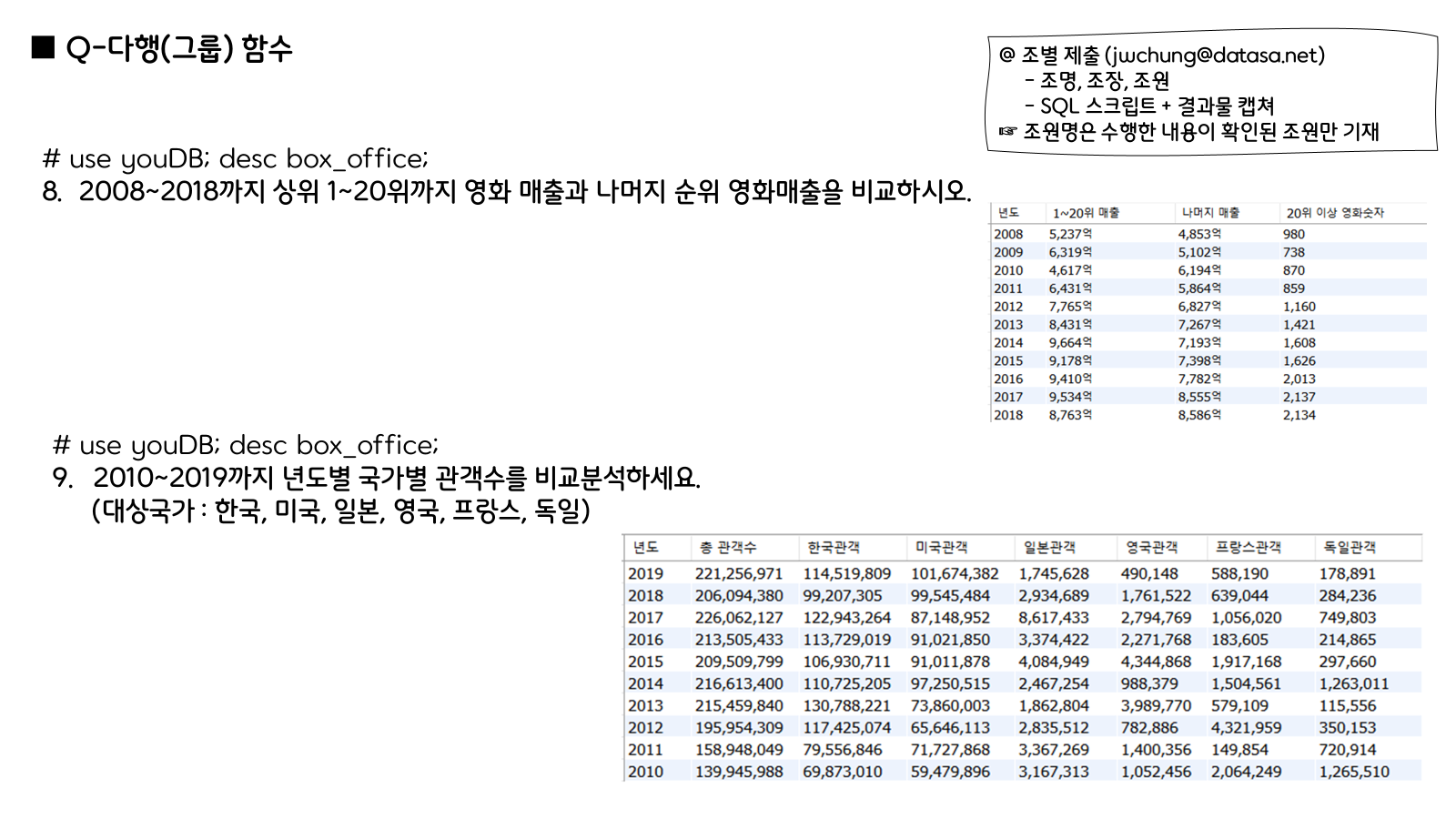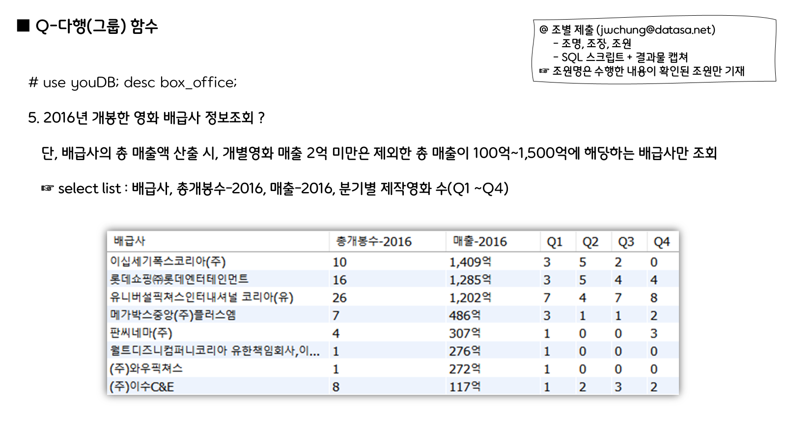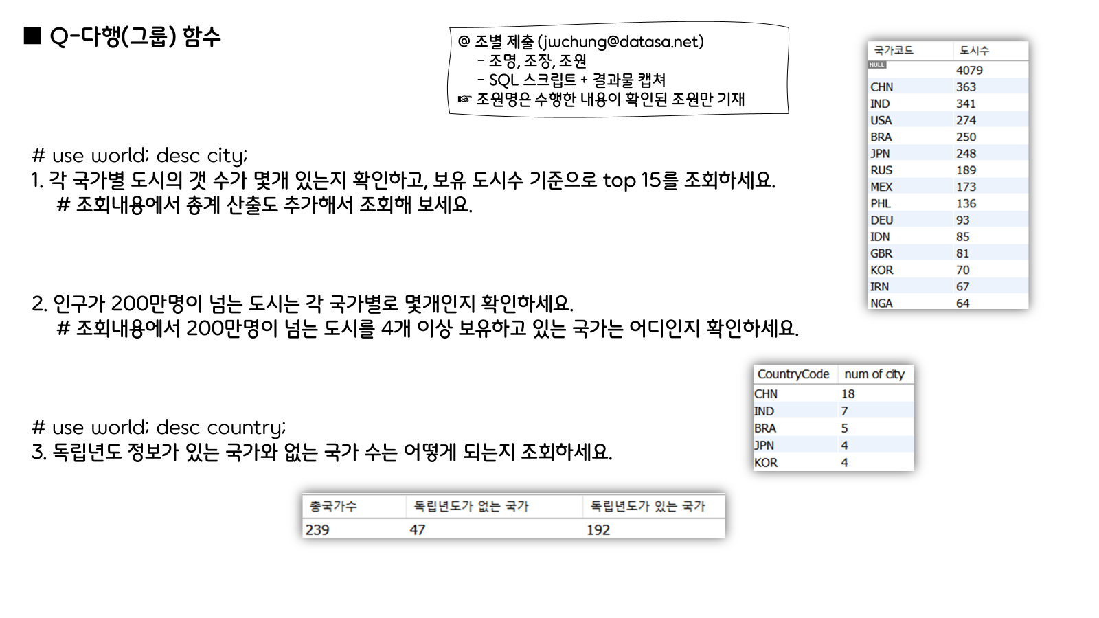 ▶ 그룹함수를 안내하기전에 지금까지 안내한 내용을 중심으로 Review Quiz 풀고 가기