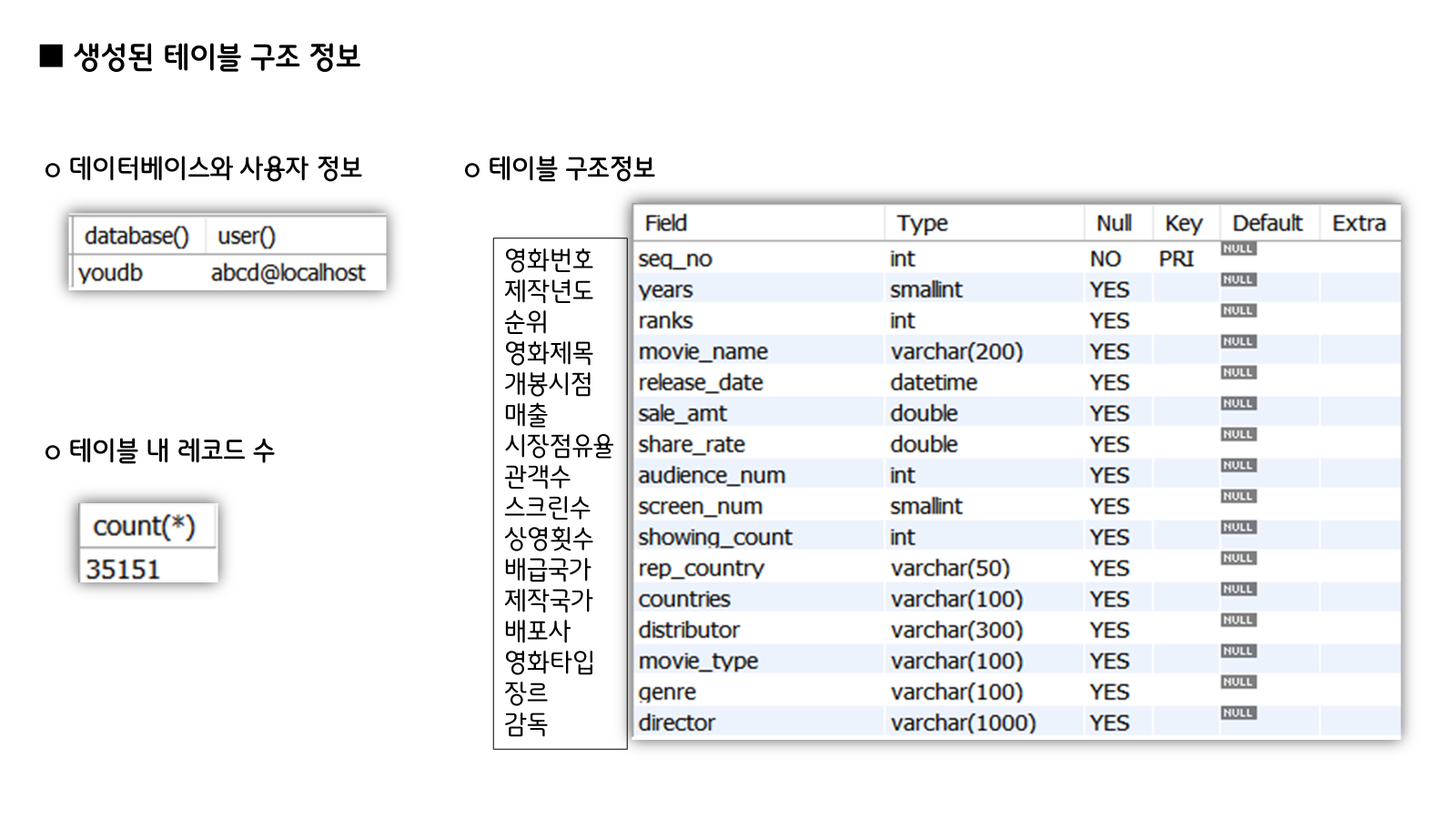 1) 하기 안내된 테이블을 생성 (수업시간 안내)