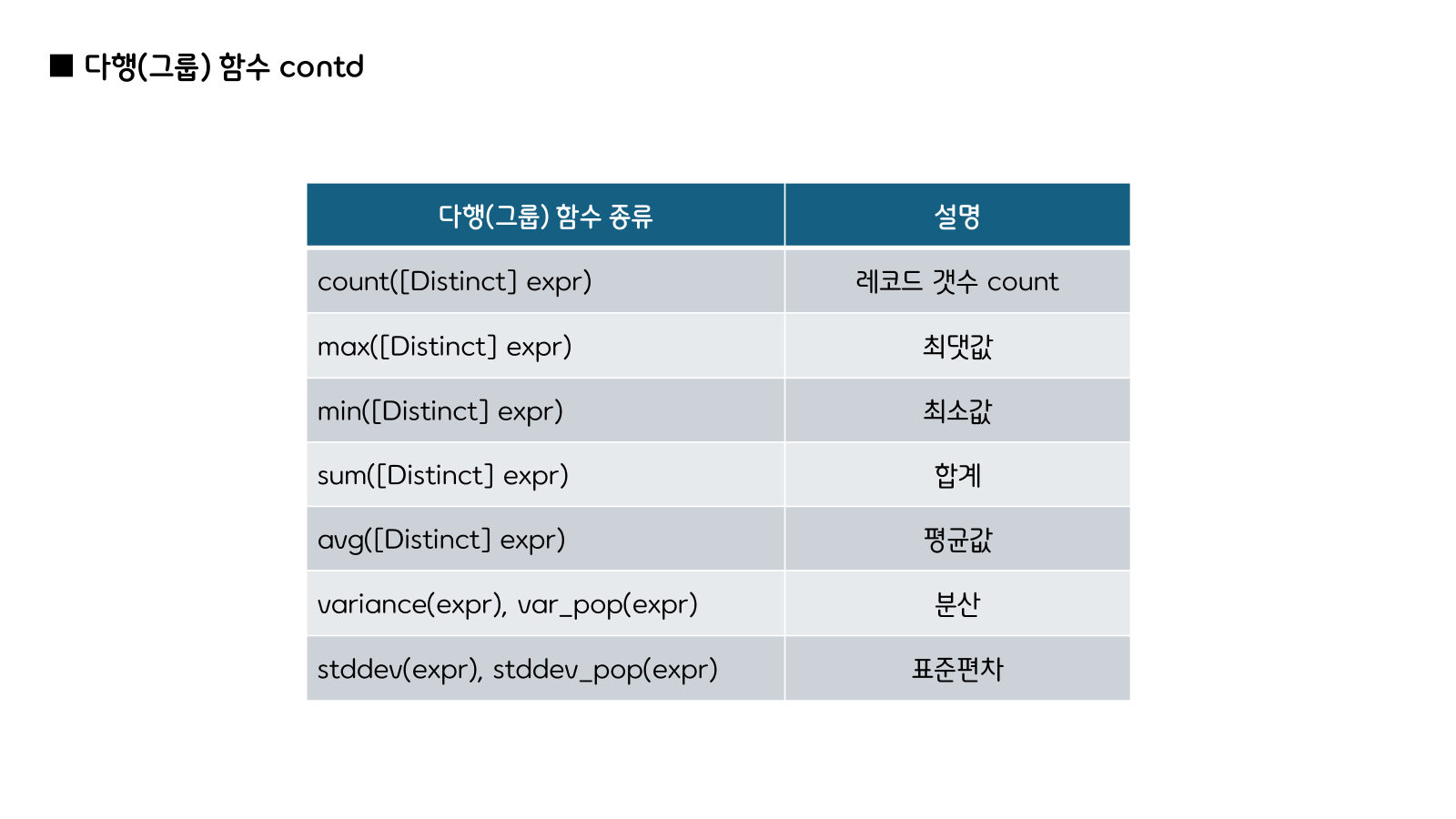 이제 다행(그룹)함수에 대해서 알아 보시죠.