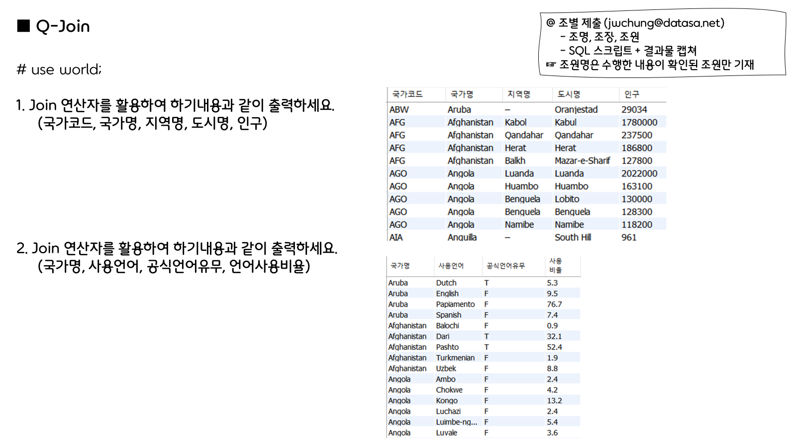 JOIN은 둘 이상의 테이블을 공통 컬럼(키)을 기준으로 결합하여 데이터를 조회하는 SQL 문입니다.