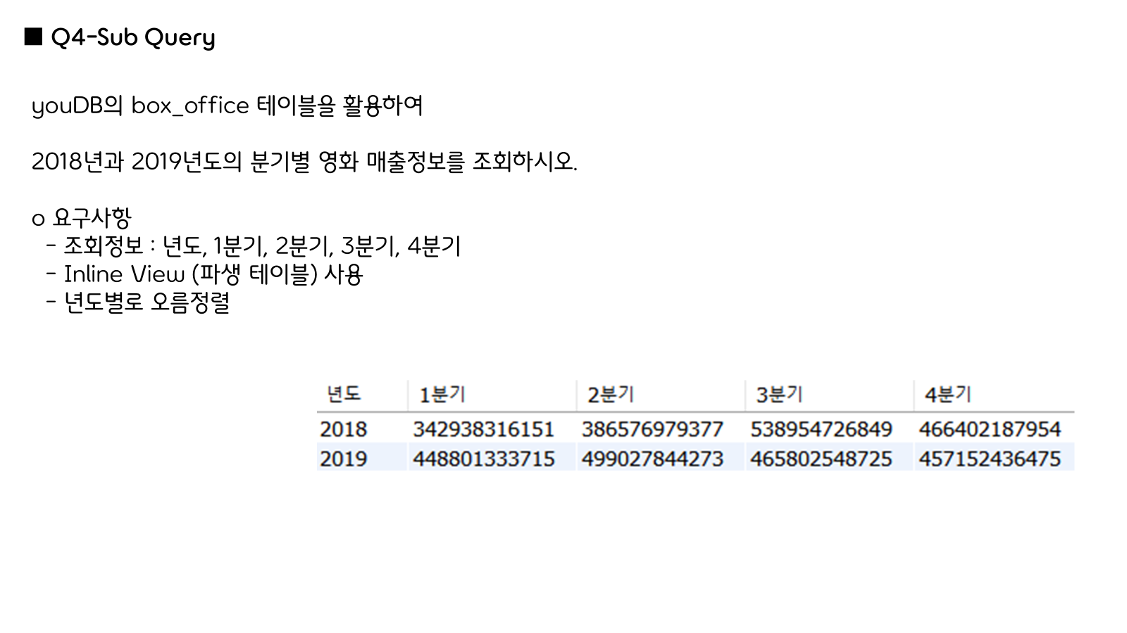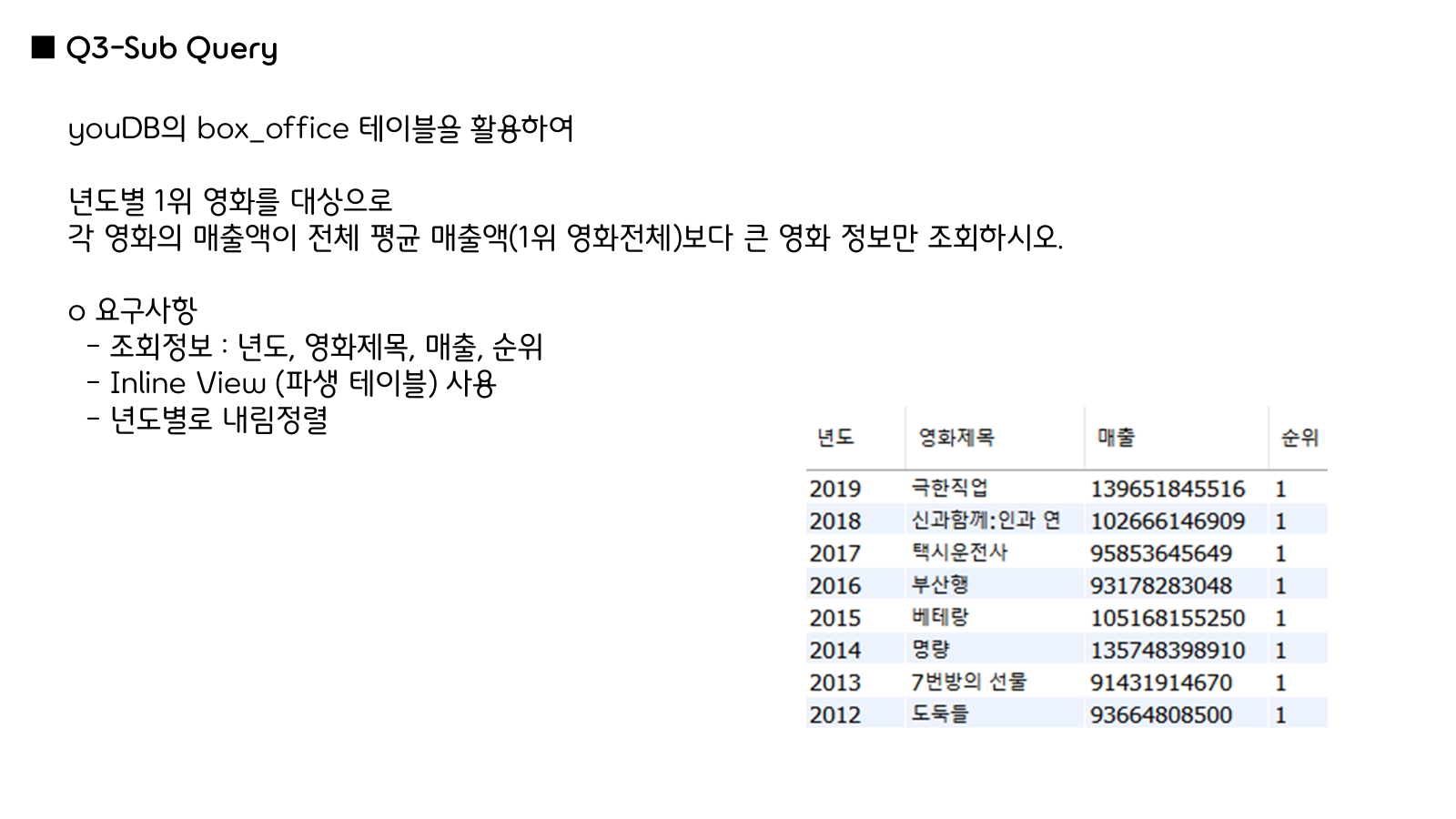 따라서, 최적의 쿼리를 작성하기 위해서는 서브쿼리와 조인의 특징을 잘 이해하고, 문제에 맞는 적절한 방법을 선택하는 것이 중요합니다.