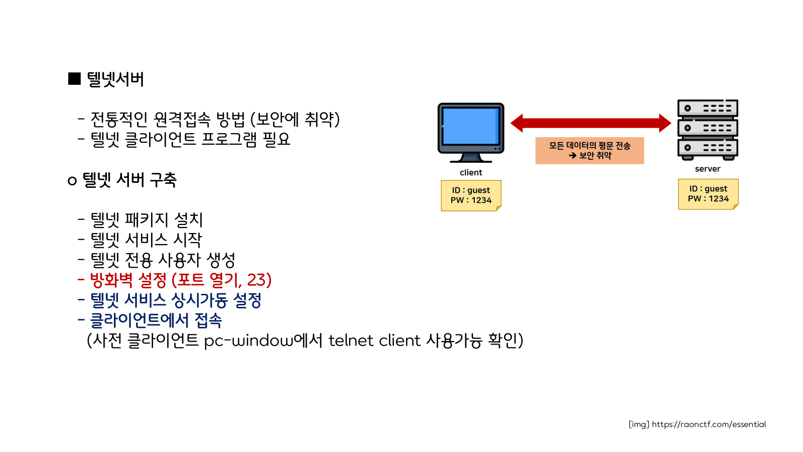 | 11. 윈도우 클라이언트 프로토콜 (SSH, FTP) (1) | 2024.02.29 |
