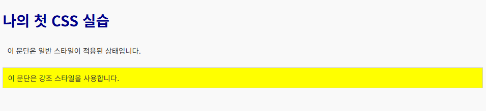 <p class="highlight">이 문단은 강조 스타일을 사용합니다.</p>