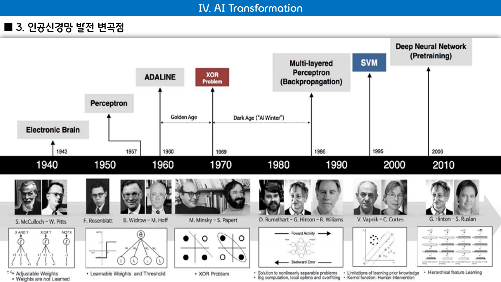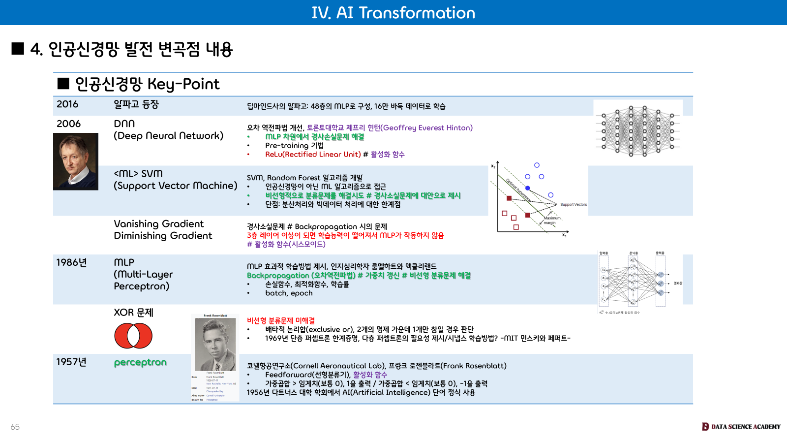 AI Transformation의 본질적인 의미와 함께, 이를 가능하게 한 머신러닝 및 딥러닝 기술의 세부적인 작동 원리와 역사적 발전 과정, 그리고 주요 알고리즘들을 심도 있게 다루어 AI 시대의 핵심 기술 이해를 위해 설명드렸습니다.