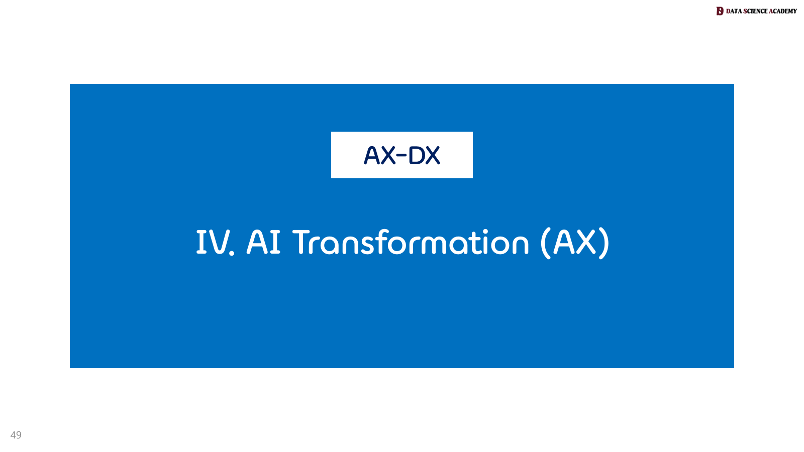 정의: AX는 기업이나 조직이 인공지능 기술을 핵심 비즈니스 프로세스, 제품, 서비스, 그리고 조직 문화에 통합하여 근본적인 변화와 혁신을 추구하는 것을 의미합니다.