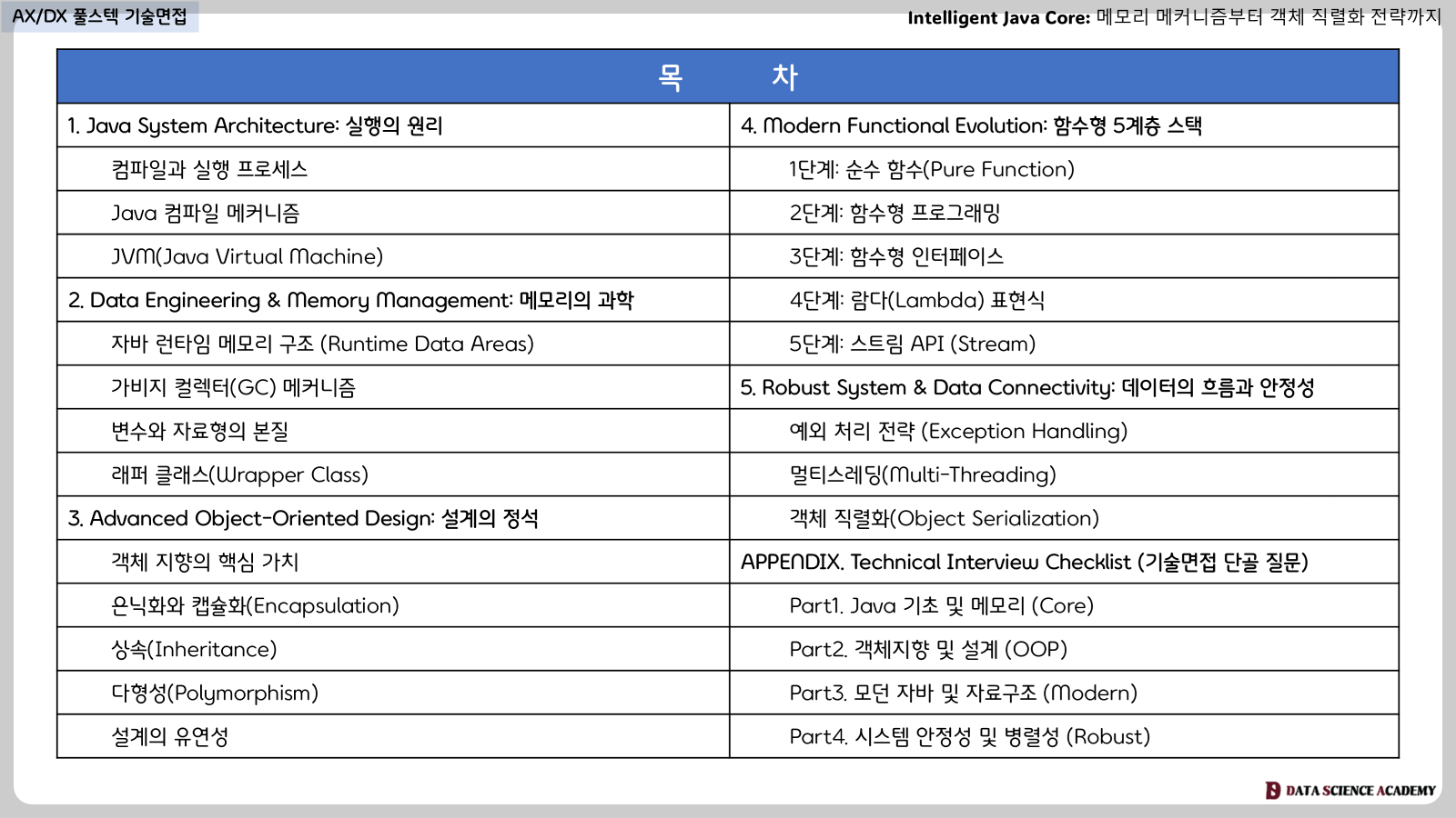수십~수백억대 프로젝트의 거대한 설계도를 실현하기 위한 가장 단단한 기초, Intelligent Java Core를 통해 기획과 개발을 아우르는 풀스텍 통찰력을 소유하시기 바랍니다.