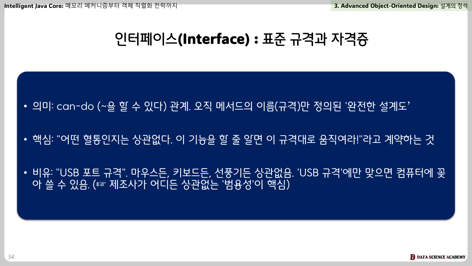 2. 인터페이스(Interface): "표준 규격과 자격증"