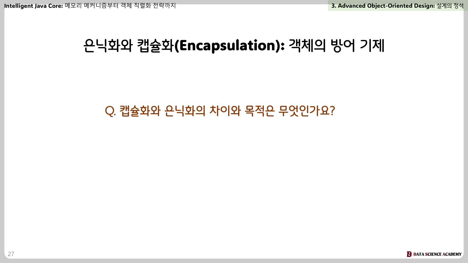 AI가 시스템의 많은 부분을 자동으로 생성하는 시대일수록, 각 객체가 독립적으로 자신을 보호하는 캡슐화의 가치는 더욱 빛납니다.