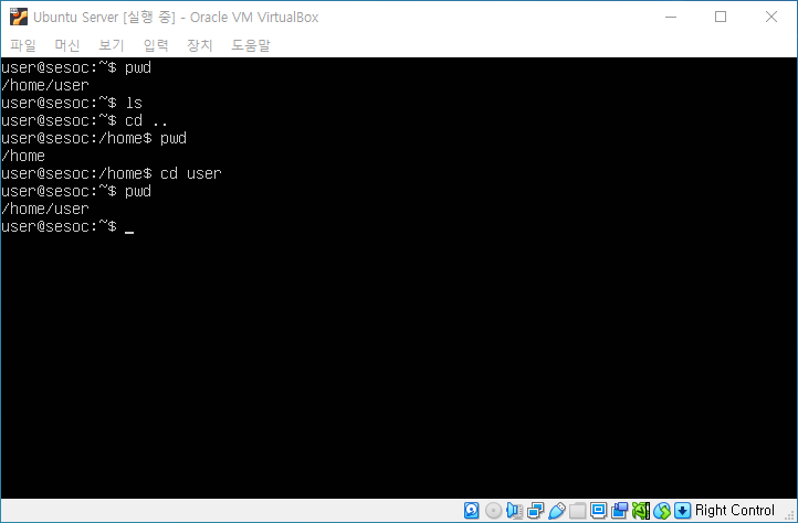 상위 경로로 이동 후 pwd를 실행하면 /home으로 경로가 이동된 것을 확인할 수 있다.