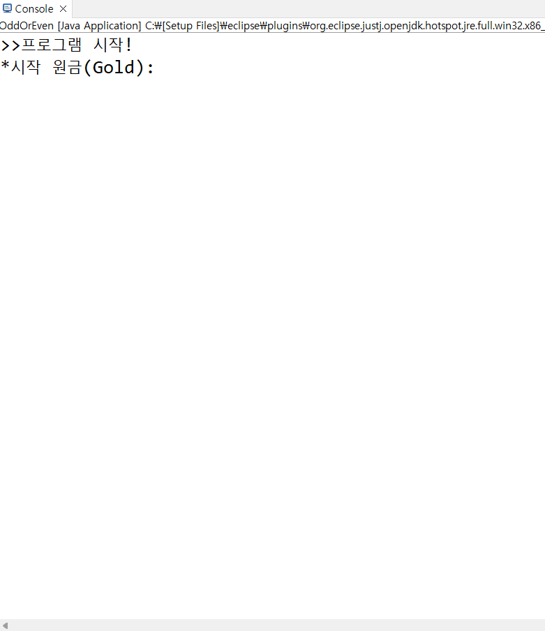 System.out.print("1)홀 2)짝 입력 (0:프로그램종료): ");